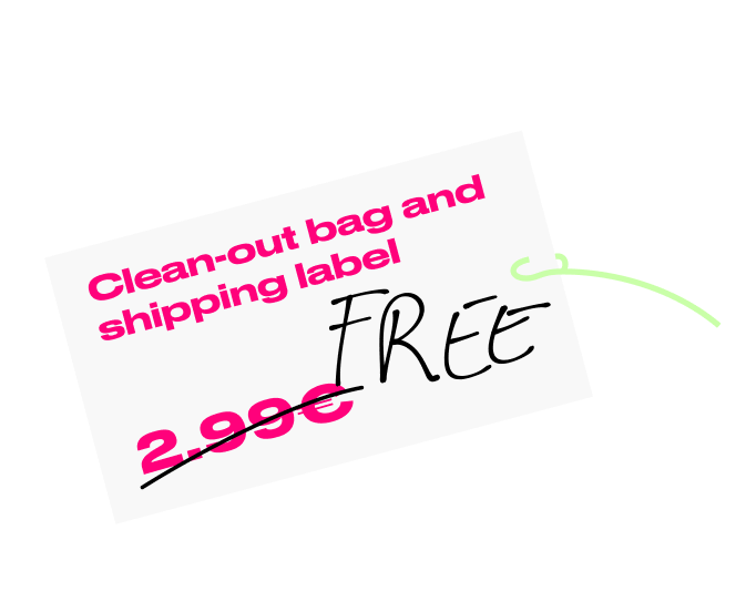 Our clean-out bags are designed for around 25 small items like t-shirts or XS/S sized jeans, shirts, dresses. Or it’s 12 mid-size items like jeans, shirts, dresses, skirt of M/L size. Or it can fit 3-4 large items, like coats or oversize sweaters. And of course you can combine it, for example: 1 jacket, 3 jeans, 2 skirts, 5 t-shirts.
